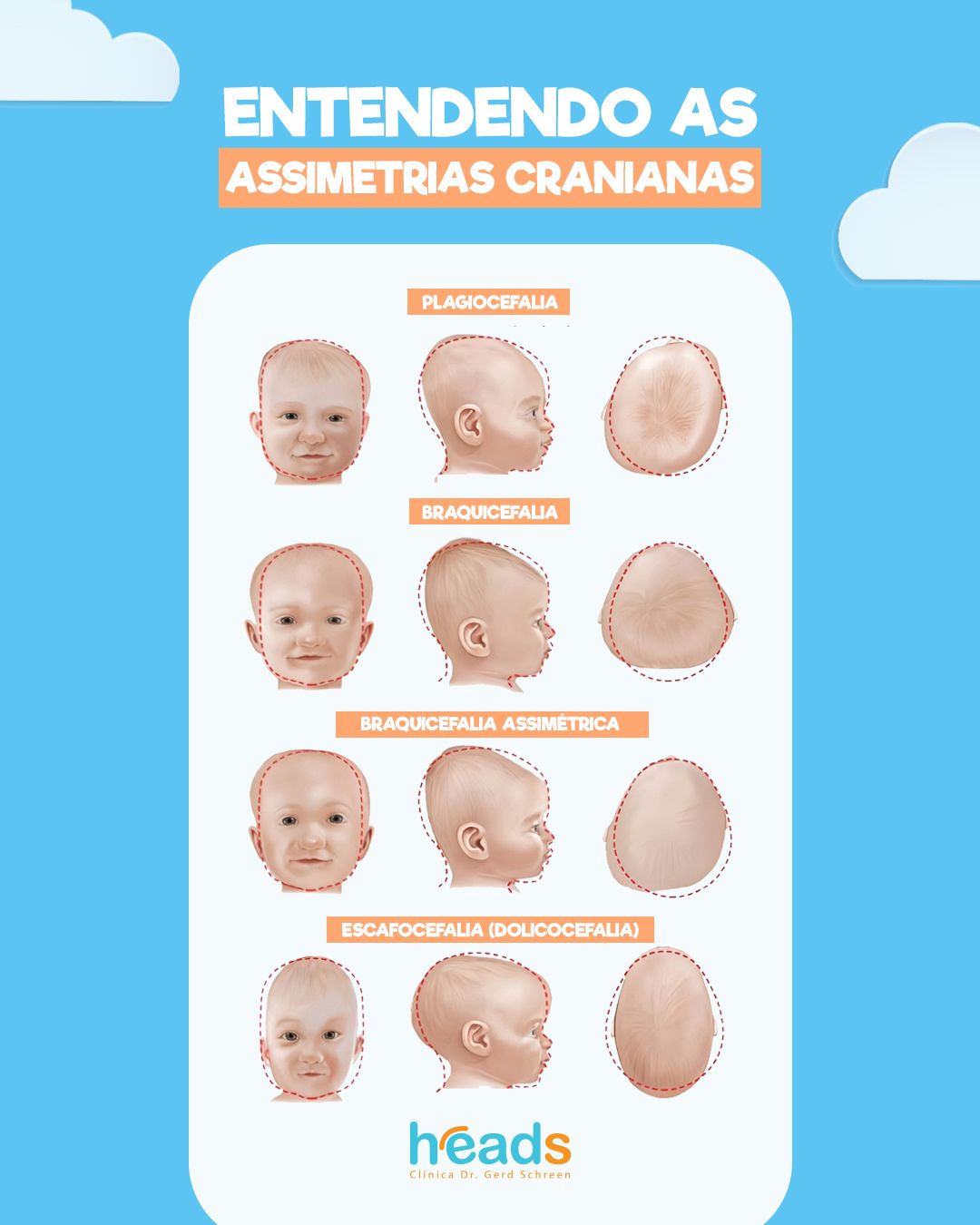 Assimetrias no formato da cabeça podem se desenvolver devido a forças externas aplicadas ao crânio do bebê. A intervenção precoce, incluindo o reposicionamento e o tratamento com órtese craniana (capacete), pode ajudar a corrigir essas deformidades.
